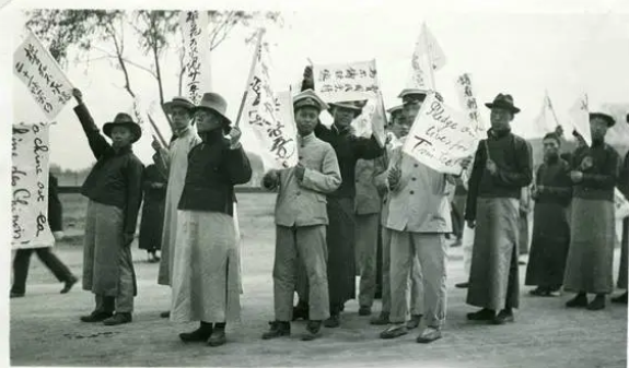 ▲左侧学生手持标语:誓死不承认二十一条密约