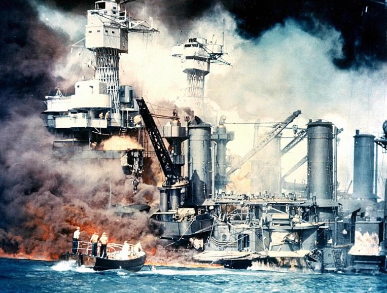 这是1941年12月7日珍珠港事件发生时美国战舰被轰炸后的资料照片。新华社发